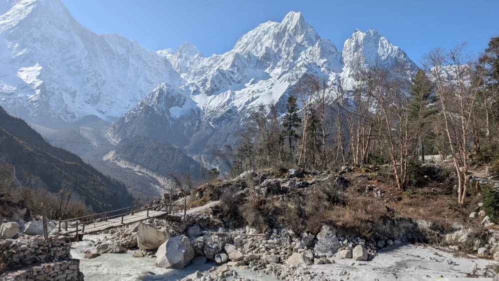 The hike from Ghap to Manrung should take another 3 hours. We will come across Buddhist prayers-encrypted mani walls on the trail. Depending on the time of the visit we can see various colors of nature.